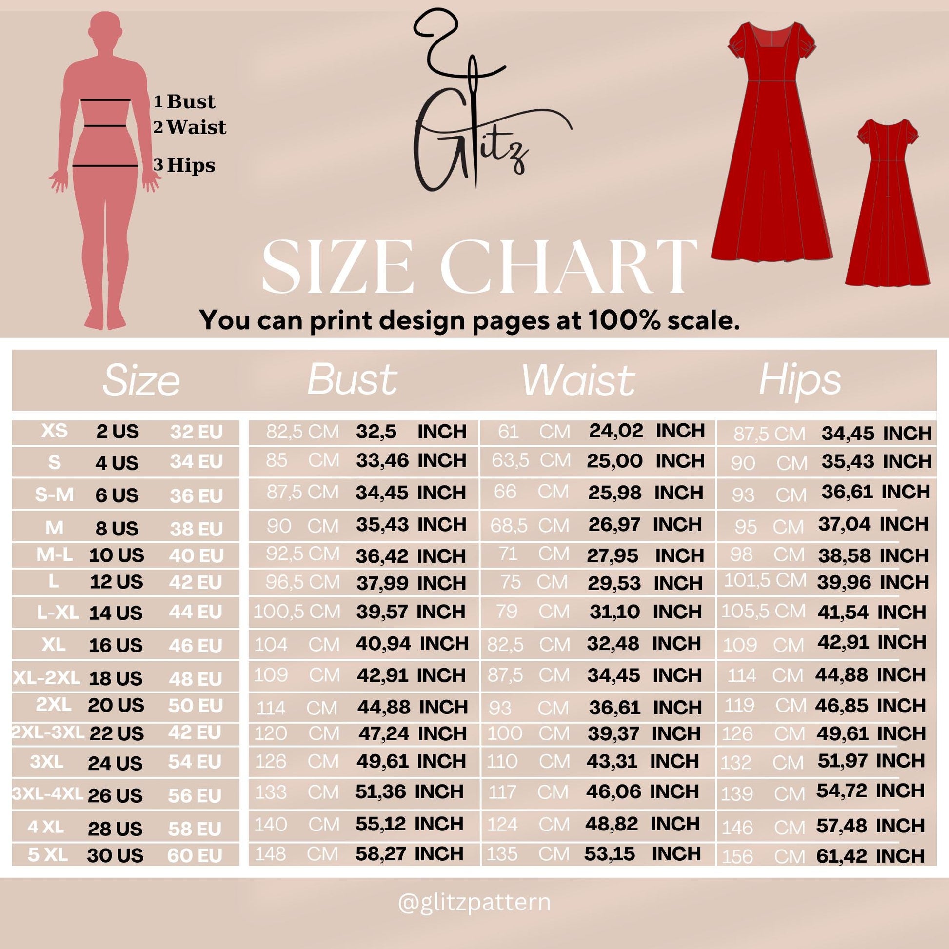 US 2–30 | EU 32–60 | XS–5XL